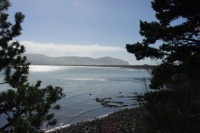 The hike would be a counterclockwise loop starting on the southeastern edge of Tillamook bay. The jetty channel terrain has small conifer and scotchbroom. The entire loop is 7.4 miles.